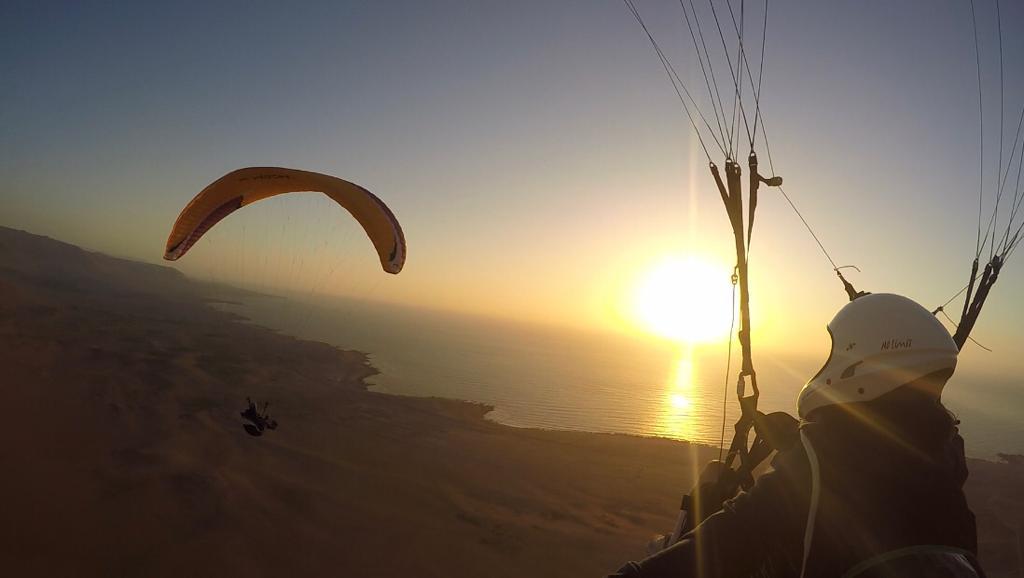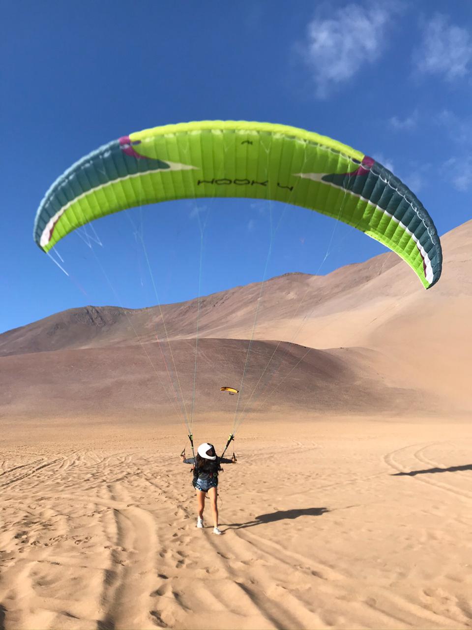 Cursos De Vuelos Ofrecemos cursos de iniciación al Parapente, está dirigido a aquellas personas que nunca volaron y quieran iniciarse al mundo del vuelo en PARAPENTE. A diferencia de otros sitios de vuelo Iquique cuenta con condiciones muy viables para la práctica de este deporte, es por eso que realizamos cursos en un periodo menor en tiempo a diferencias de otros sitios de vuelo. Es un curso progresivo en el cual el alumno, debe ir cumpliendo cierta evolución dentro de este para las siguientes fases de avance, para llegar a conseguir la autonomía necesaria para volar un PARAPENTE. CONTENIDO DEL CURSO Antes de comenzar el curso el alumno vuelo realizará un vuelo biplaza de introducción al parapente con su futuro instructor. Del día uno al día tres del curso se destinan a las prácticas de control de vela en el suelo, donde se aprenderá primero que todo a preparar el equipamiento y luego el inflado y control del parapente en tierra. Cuando ya conocemos como controlar el ala y se tiene un buen control en el suelo, comenzaremos a los primeros vuelos desde una altura de 5 metros de altura y progresivamente iremos en aumento de altura y duración. 1.) Los Vuelos de Altura: El curso de Piloto de parapente consta de unos 5 vuelos de altura. Todos los vuelos de altura se realizan con radio. Un instructor dirige y controla el despegue y la primera parte del vuelo, mientras que otro se ocupa de la aproximación y del aterrizaje. En los primeros vuelos el alumno recibe instrucciones de todo lo que debe ir haciendo durante el vuelo y poco a poco, se le va dejando que tome la iniciativa y decida por sí mismo como hacer las maniobras de despegue, vuelo, aproximación y aterrizaje; siempre bajo el control del instructor y de la comunicación por radio. 2.) Contenido práctico: Presentación del material, preparación, revisión y colocación de la silla, prácticas de inflado y control del ala en el tierra con viento flojo, carreras en tierra para notar las primeras sensaciones de sustentación, vuelos cortos de poca altura, despegue y aterrizaje, virajes suaves, aproximación. Utilización del acelerador. Iniciación al vuelo en ascendencia (dinámica y térmica). Prácticas de descenso rápido con “orejas”. 3.) Contenido Teórico: “Técnica de vuelo”: Virajes, aproximación, casos particulares. “Aerología”: Viento, brisas, ascendencias, estabilidad e inestabilidad. “Seguridad”: Peligros en el despegue, vuelo y aterrizaje. Utilización teórica del paracaídas de emergencia. “Fundamentos de vuelo y aerodinámica”: Fineza, tasa de caída, velocidad, polar de velocidades. II.- Lugares donde se hace el curso: Para los cursos se desarrollan a 15 km. Al sur de Iquique en el sector de Palo Buque .Es el lugar más óptimo y viable para la práctica del parapente especialmente los cursos, debido a que es un sitio sin obstáculo de ningún tipo y el viento predominante es el mejor para el nivel de alumnos en curso importante es destacar el nivel de confianza que otorga el lugar para los alumnos. Después del día 7 tomaremos el despegue de Alto Hospicio ubicado a 490 mts. Sobre el nivel del mar, desde aquí realizaremos nuestro gran y primer vuelo de altura de nuestros alumnos. Siempre guiados y monitoreados por radios e instructor a cargo en despegue. Aquí terminaremos nuestra segunda etapa de curso hasta el día 14 viendo lo más técnico de este vuelo y prácticas guiadas y dando cierta autonomía a nuestros alumnos siempre bajo la supervisión de nuestros instructores. Al terminar el curso, el alumno debe ser capaz de realizar vuelos sin ayuda del instructor en lugares fáciles y con aerología tranquila. III.- Certificación: Una vez completado el curso, emitiremos un certificado al alumno con el cual el alumno podrá tomar los exámenes de la DGAC para obtener su credencial de operador de parapente con la cual está habilitado para operar dentro de todo nuestro país. IV.-Vínculo post curso: La escuela le ofrece a los alumnos egresados permanecer bajo el alero de los instructores un tiempo luego del término del curso. La idea es que los alumnos egresados tengan un grupo de pertenencia y un consejo experto para sus primeros vuelos sin la guía de un instructor. El lapso de tiempo puede variar de alumno a alumno. VI.- PAGO: Contactarse con la escuela para ver formas de pago. Precio Curso Piloto Parapente $1.200.000 / CLP La duración del curso es de 14 días de práctica. 4 a 5 horas por día de entrenamiento. Transporte hacia los sitios de vuelo. (Palo Buque y Alto Hospicio) Libro “Parapente Iniciación”. Parapente con homologación escuela y talla apropiada. Silla de vuelo y Paracaídas. Casco y Radio 2 Vuelos Biplaza instructivos.